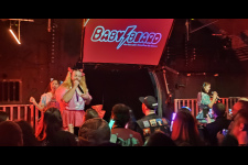 Ansonsten startet die Band aber direkt mit "Nippon Kara Konichiwa" rein, was direkt mal den Ton für den Rest des Abends setzt. Schaut man sich im Publikum um, ist es insgesamt eine ziemliche Würstchenparty, aber vereinzelt sieht man auch Menschen in langen Kleidern und außerdem eine Mutter, die sich Sorgen um ihren Zwölfjährigen macht, als dieser mal kurz im seeehr entspannten Moshpit verschwindet. Die Band schwankt musikalisch zwischen J-Pop und Metal, weshalb das Publikum auch aufgefordert wird die Pommesgabeln in die Luft zu recken. Dazu wird auf der Bühne fleißig abgetanzt.