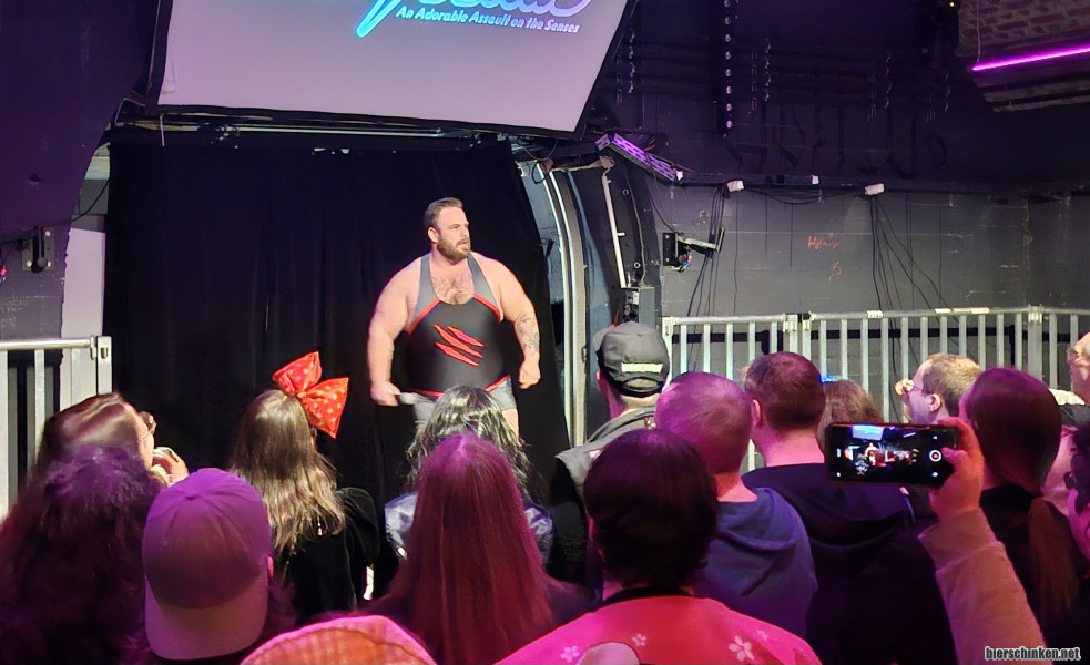 Plötzlich erscheint dann dieser Typ auf der Bühne und schmiert einfach den Sänger um. Dann reißt er sich unter lauten "Buh!"-Rufen das Mikrofon unter den Nagel. Scheinbar hat dieser Typ etwas gegen die Band und erklärt uns, dass er diese erbärmliche Show stoppen müsse.