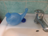 Vorn paar Jahren habe ich mir mal nach einem Wageni-Konzert diese Nasendusche zugelegt und krame sie immer hervor, wenn ein Konzertbesuch besonders intensiv war. Dann trampeln die euphorischen Konzertbesucher*innen nämlich so viel Staub in die Luft, dass uns kiloweise Dreck in die Nasen geblasen werden. So auch heute wieder! Als Hausstauballergiker muss ich da ne Lösung parat haben.