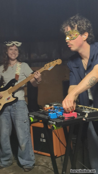 Walter: 31.01. Vier Bands auf einer Scheunenparty in Melbourne, zu der mich C.W.A aus der Gartenshow eingeladen haben. Motto ist ein Maskenball und viele Menschen trugen Masken oder waren aufwendig geschminkt. Es spielen zunächst THE DROP TOPS. Queer punk, folkisch, sehr clean, starke Messages und starke Stimme. Danach BIGGER BOOT. Hier gibt's Post Punk mit groovigen Schlagzeug und abgefahrenen Effektgitarren. Gefällt mir auch sehr gut. Danach C.W.A., wie neulich nur mit besserem Sound. Noch viel besser jetzt. Kurze Unterbrechung gab's auch noch, weil jemand übers Equipment gefallen ist und das komplette Keyboard mit Pedals umgeworfen hat. Die Person schämte sich für den Rest des Abends, obwohl alle total fein damit waren und es halt passieren kann auf Floorshows. Letzte Band war IN TRANSIT, dessen Gitarrist auch schon bei bigger Boot zu sehen war. Etwas poppigerer Punk. Kernsolide und passt gut als letzte Band in den Abend.
