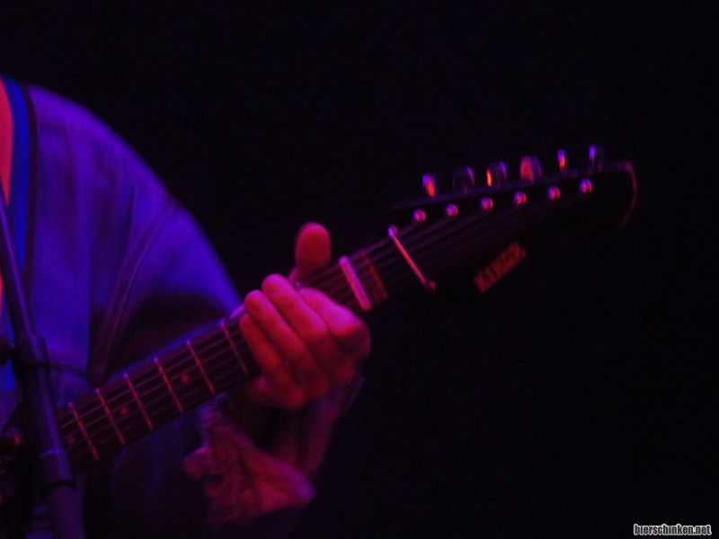 H. tippt mich von hinten an, ich solle ein Foto vom Gitarrenhals machen, er könne nicht lesen, welche Marke da drauf steht. Da bitte.