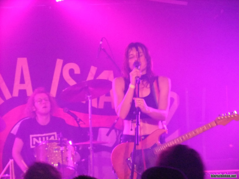 Das hat zwischendurch schon sehr performative Züge, wenn Drummer Sybe Versluys im Solo versinkt, Sängerin Helena Cazaerck sich Wasser über den Kopf gießt, Gitarristin Loeke Vanhoutteghem und Bassistin Amanda Barbosa miteinander tanzen und sich alle vier um den Drumraiser versammeln, wie um eine Feuerstelle, in dem der in den Songs thematisierte Weltwahn brennt. Trotzdem wirkt es nicht inszeniert, sondern organisch aus den Songs heraus kommend und nahbar. Die freuen sich einfach sehr, ihre Musik live zu spielen und ich freue mich sehr, sie live zu sehen.