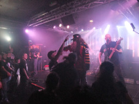 Die Gitarren und Bassverzerrung ist mir zu Industrial und die Maschinenpistolensnareverstärkung vom Band in nahezu jedem Breakdownpart finde ich dann auch etwas anstrengend - vor allem gibt es an diesem Abend einfach echt viele Breakdownparts. Aber von der Energie und Stimmung ist das gut. Menschen lächeln, moshen, twosteppen und windmühlen. Ich kann vor allem die neueren Songs etwas abgewinnen, die kicken gut, wenn mal kein Breakdownpart ist.