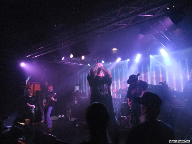 Guter Wumms und hartes Riffing, Doublebassmassagen und viele Möglichkeiten die Arme im Kreis zu schwingen. Nach meiner Erfahrung bei Bane positioniere ich mich seitlich mit drei Armlängen Entfernung zum slamdancebedingten Loch vor der Bühne.