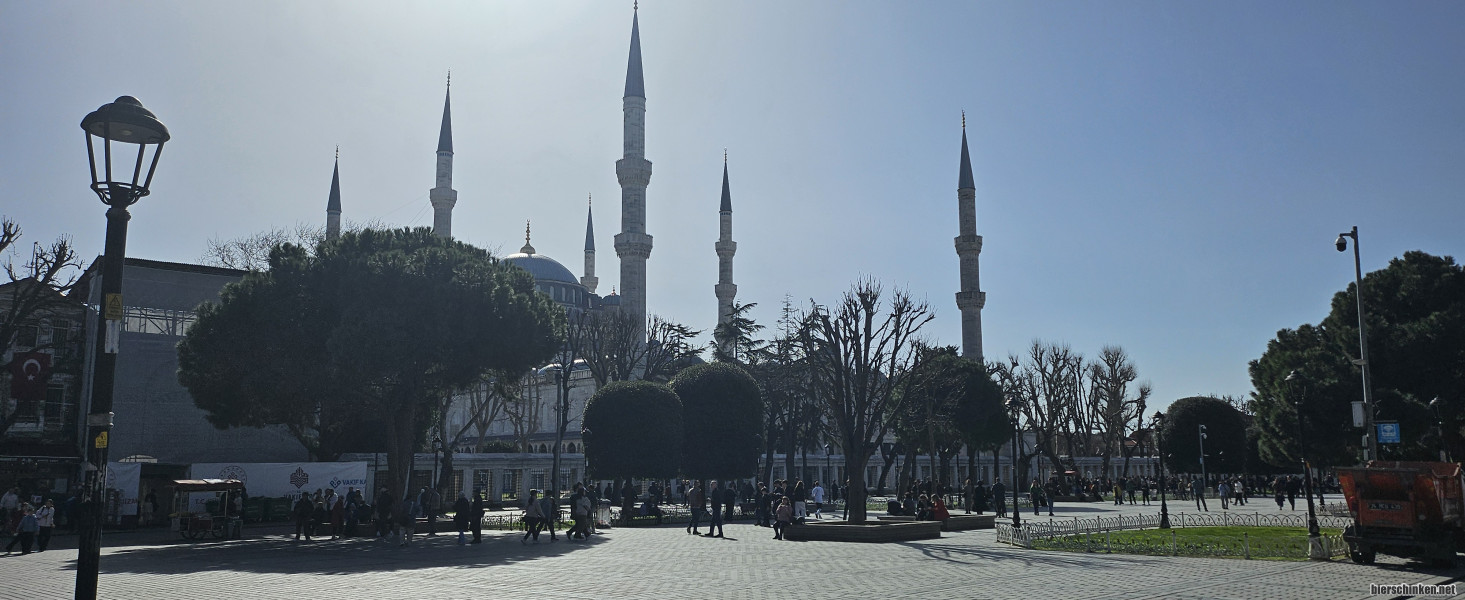 Zwen: Der erste Morgen grüßt mit Sonne und 16 Grad. So lässt es sich doch Mitte Februar wirklich leben. Götz gönnt sich einen Snack und ab geht es in die Blaue Moschee. Die ist eigentlich gar nicht blau und die Leute hier sind auch nicht besoffen, aber da der Eintritt nichts kostet, stelle ich keine weiteren Fragen.