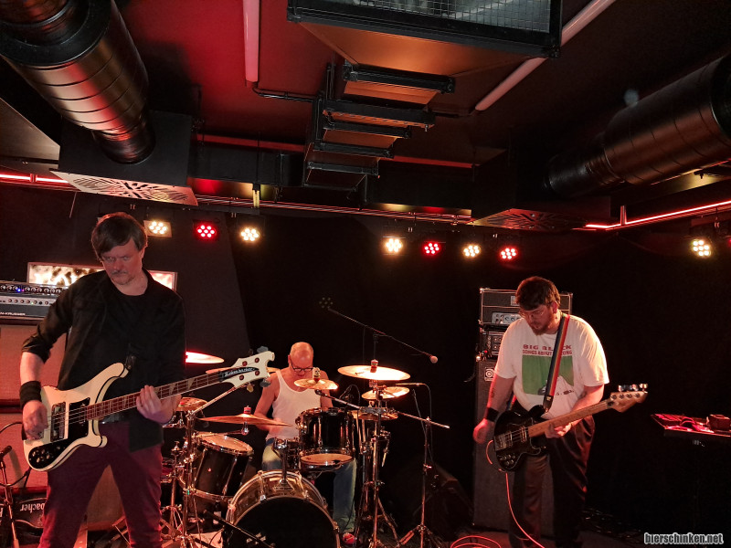 Ersatzweise dann als nächstes OCTO. Das Trio aus Schlagzeug und zwei Bässen ballert uns eine brachiale Soundwand entgegen! Hui, das drückt ordentlich. Erstaunlich, was aus zwei Bässen so alles rauszuholen ist. Selten soviele Pedals bei Bässen gesehen. So ist es dann auch erstaunlich abwechslungsreich, selbst ohne Gesang. Auch herrlich, wie auf das Schlagzeug eingedroschen wird. Erst später werde ich dann aufgeklärt, das der Name der Band wohl was mit den insgesamt acht Seiten zu tuen haben könnte...