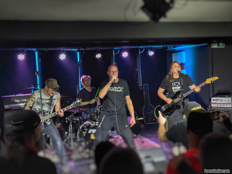 maks: Wie üblich Hit an Hit. 3-4 Songs später, Ihr wisst schon. Dieses Mal bleibe ich direkt im Vorraum und stelle mich unter den großen Bildschirm, wo die Getränkeauswahl optisch dargestellt wird, inkl. Abbildung der Flaschen: Hansa, Stauder Bierchen, Afri, Bluna, MioMio Mate (0,33), alles für je 2 Ocken und Wasser umsonst. Sehr schön. Einziges Manko: Es gibt kein alkoholfreies Bier für die nicht wirklich vorhandenen fahrenden Eltern und für mich (erwähnenswert: seit neustem weiß ich - in Anlehnung an ganz früher - dass Traugott Simon 0,0 tatsächlich gar nicht mal so scheiße ist). Aber es gibt dafür klassische alte weiße Männer (jaja, Ihr mich auch), die ich von meinem Platz hier gut beobachten kann und die mir einmal mehr zeigen, warum ich mit vielen Teilen der Punk-Generation meines Alters so gar nix mehr anfangen kann. Es gibt an der rechten Seite der ca. 2 Meter breiten Theke ne Schlange, eine ca. 160cm-große weiblich gelesene Person ist an der Reihe, will gerade bestellen, da kommt von links eine (nicht nur gelesen) männliche Person daher, nimmt direkt 1,80 Meter der Theke ein und bestellt vorher. Nahezu zeitlich kommt von vorne, schräg rechts, der nächste und bestellt über die ersterwähnte Person hinweg ebenfalls. So sinnbildlich. Smash the Patriarchy und erspart mir euren "ich bin auch alt und weiß und männlich und fühle mich von dir diskriminiert"-Dreck.