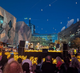 10.2 Folk Bitch Trio als Kerzenkonzert am Föderations-Quadrat als Teil der kostenlosen Eventreihe "Open Air at the Square" Die Kerzen sind übrigens nicht echt. Die Musik allerdings schon. Die war auch sehr schön. Entspannte Folkmusik mit mehrstimmigem Gesang und einer Lap Steel Guitar. Hat mir gut gefallen so als Tagesausklang an einem Dienstag