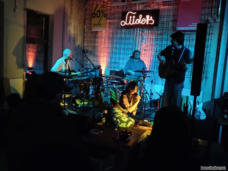 Beide Bands heute aus Dresden. Es fangen an die mir völlig unbekannten TINTED HOUSE, die immer mal wieder ihre Momente haben. Im Grunde hat das was von Barmusik, die immer wieder mal ausbricht. In der Mitte des Sets ein fast krawallig anmutender Grungesong. Oft hat es so psychedelische Momente und die stärksten Momente sind für mich die stoischen Songs, die sich langsam immer mehr reinsteigern. Experimente werden auch nicht gescheut - so wird auch mal ein Text aus einer Tageszeitung in einem Song eingebaut. Anspruchsvolle als auch abwechslungsreiche Musik. Muss man mögen.