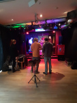 Wir sind tatsächlich seit ca. 12 Uhr vor Ort um alles um-, aus- und einzuräumen. Tische und Stühle raus, Tanzboden herrichten, Bühne vorbereiten, Anlage aufbauen. War wirklich ein bisschen chaotisch und ich hätte nicht gedacht, dass wir so lange brauchen. Aber pünktlich zum Einlass ist dann auch das meiste erledigt. Auch das Personal für die erste Einlassschicht erfuhr erst 20 Minuten vor Start von seiner heutigen Aufgabe. Hat dann aber doch alles geklappt!