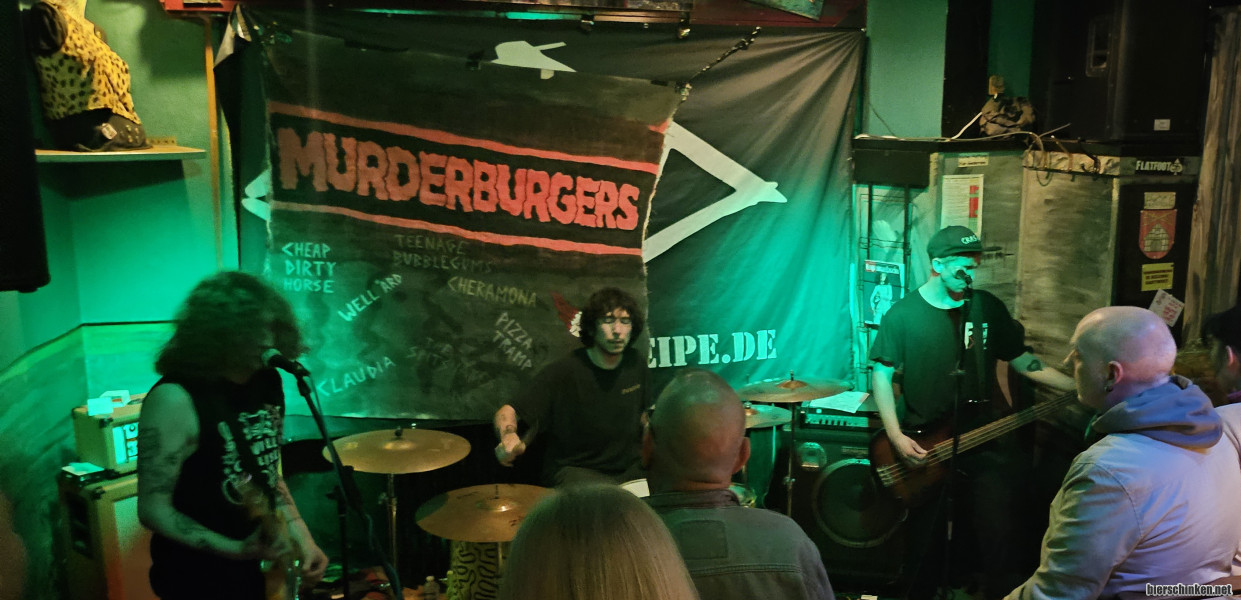 Zwen: Ja, so ist der Auftritt dann auch dementsprechend schnell zu Ende. Ich glaube die Band hat ca. 45 Minuten gespielt. Vielleicht war es aber auch Strategie, da weder Schneebesen noch Handtücher benutzt wurden und man die Trommelfelle der Nachbarn wohl nicht allzu lange belästigen wollte.Unlustig, weil du ihn nicht verstanden hast oder weil du Witze über Hühner nicht fühlst?