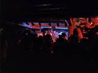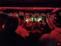PEST HOLE haben es tatsächlich geschafft, ein neues Album nach zehn Jahren zu produzieren. Kurz bevor die FiWa/Berlin Connection wohl wieder aufgelöst werden muss, merke ich, dass neuerdings viel D-Beat geatmet wurde. Auf Nachfrage wird spontan gekontert: "Haben wir beim Pilzesammeln gefunden". Schlagfertig, lieber Micha. Bester Auftritt der Truppe bisher! Bei EXTINCT sehe ich etwas Rest in einer Höhle, die mitlerweile einen Geruchmix aus Männerschweiß und Bier angenommen hat. Der Raum ist jetzt echt randvoll zu einem Bastard aus Thrash und Mosh. Gute Ansagen gegen die ganzen Kriege und Wehrpflicht. Am Schluss gibt´s als Schmankerl "Faschopack" von Rawside. Die letzte Band DETHRONED (die aus DD) skippe ich weitgehend. Ich weiß was mich erwartet, dass das vielen Baseballkappenträgern sehr gut gefallen dürfte. Mir ziehts die Fussnägel hoch, wenn ich schon dran denke. Sind bestimmt die beste Band des Abends gewesen?!