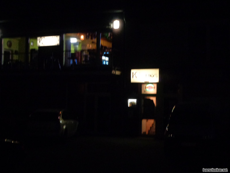 Einfach nach Hause fahren ist aber natürlich nicht. Um kein Hausverbot im Butts zu riskieren (da will ich morgen noch nach dem Metzer 58-Konzert hin) begebe ich mich ins Kosmos (hier von außen zu sehen). Der Flipper ist kaputt, aber Bier gibts trotzdem. Insgesamt also ein sehr erfolgreicher Spontanausflug ohne ernstzunehmende Ausfälle. Schön, schön.