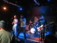 Dann schließlich! Zunächst begrüßt uns der Veranstalter mit der Frage, ob der Veranstaltungsname "Gehacktes" denn noch zeitgemäß sei und wir dürften gerne Vorschläge zur neuen Namensfindung einreichen. Mir ist das alles wumpe, aber folgende Vorschläge vergaß ich in das Katzenschwein zu werfen: Geshreddertes, Gemachtes (mit den Spinoffs "Eingemachtes" für alte Bands und "Nachgemachtes" für Coverbands), Gelacktes, Genatztes. Oder vielleicht etwas gemüsiger, ich mag zum Beispiel das Wort "Wirsing" und plädiere für "Wirsingsfreude". "Kompott" fänd ich aber auch schön. Oder ganz ehrlich einfach nur: "Konzert mit Bands". Oder "Bier4Euro" (mit der low-budget-Variante "Mitgebrachtes"). Oder, um einfach alle zu verwirren, "Remscheider Talentbühne".