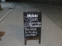 in der Werkstadt findet heute "Gehacktes" statt. Das ist ein Livemusik-Format, bei dem über Genre-Grenzen hinweg insbesondere neue Bands auftreten. Schöne Sache! Hab ich tatsächlich schon häufiger von gehört, erfahre aber heute, dass es das schon seit 13 Jahren nicht mehr gab und wir heute einem Neuanfang beiwohnen. Wow! Aber zunächst heißt es, Stille aushalten. Anscheinend wird im Nebenraum ein Theaterstück zum Thema "Stille" aufgeführt, da würde Giarrenlärm nur stören. Na das fällt denen ja früh ein! Entsprechend verzögert sich der Beginn.