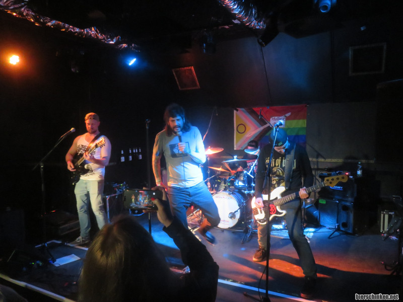 Fö: Mittlerweile haben wir spät und mir fällt auf, dass um 4:30 mein Wecker klingelt. Gleichzeitig lassen Zwen und Hasky durchklingeln, dass sie auch nicht bis zum Ende aushalten werden. Jetzt stehen wir vor der schwierigen Situation, dass wir doch eigentlich wegen der Band da sind, die als letztes spielt, jetzt aber erstmal die Band spielt, auf die wir am ehesten verzichten könnten (also, zumindest auf ihren Bassisten). Ach, schwer sowas! Naja, ein paar Töne erhaschen wir noch von PÄNTHER PISS.