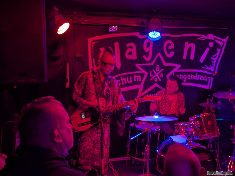 Fö: Wenn ich das richtig verstanden habe, hatten Buddhadatta eigentlich eine Australien-Tour geplant, wurden dann aber an der Grenze abgewiesen und sind jetzt halt irgendwie in Deutschland gestrandet, wo kurzfristig 2-3 Wochen Tour zusammengeschustert werden musste. Was jetzt auch wieder spannend ist, wenn man sich dazu das Ox-Interview zu Gemüte führt, wo zu lesen ist, dass sie sich an der Fuke-shu-Bewegung orientieren, was wandernde und musizierende Bettelmönche waren, die auch schon mit Korb auf dem Kopf aufgetreten sind.