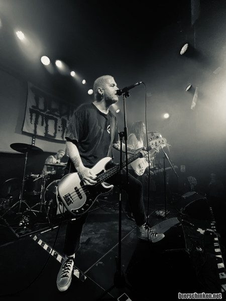 Peter: Hat mir auch gut gefallen, dass der Auftritt "kumpelig" und somit persönlicher ausfällt. Viel besser als immer die selben Ansagen. Der Line-Check hat es leider nicht ganz gebracht, der Sound ist ok, aber bei dem Vorbands war er besser. Die Band berichtet allerdings auch, dass sie alle krank wären, da sie sich auf dem Hinflug alle nacheinander von Bassist Chicken infiziert haben. Man merkt es stellenweise, vor allem wenn sie ins Publikum husten, trotzdem zeigen sie sich spielfreudig und gut gelaunt, inklusive freundschaftlicher Frotzeleien untereinander.