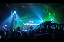 Für ein paar Top-Acts sind wir aber doch noch rechtzeitig zur Tea Time in die City gedüst: Die MURDERBURGERS hatte ich letzten Monat schonmal gesehen. Selbe Setlist, selber Spaß. Nur dass Fraser & Co. noch schneller und hektischer spielen, aufgrund der streng begrenzten Spielzeit. Und dass sie den besten digitalen Backdrop des Festivals haben. Nächstes Mal soll die Schriftart Wingdings genutzt werden.