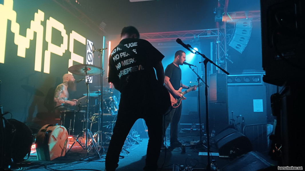 Die erste Band die ich dann am zweiten Tag sehe ist CLAYFACE. Für mich eine Neuentdeckung, die mir aber gut gefällt. Melodischer Punk, der mit der leicht krächzenden Stimme auch ein bisschen an diverse Orgcore-Bands erinnert. Beachtlicher Bart auch.
