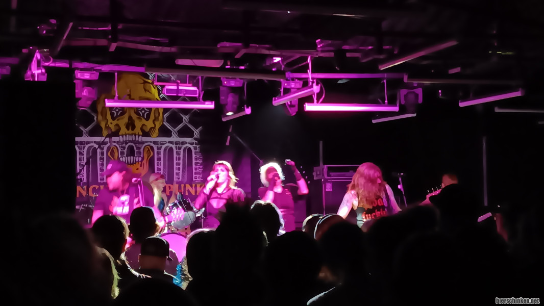 Irgendwann später finden wir uns bei den IRON ROSES wieder. Es gibt einen bunten Haufen mit einer gehörigen Prise Glam, im Aussehen wie im Klang. Hat Ohrwurmcharakter.