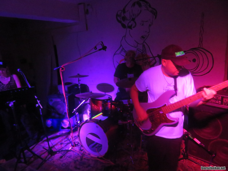 Ohne Gitarre kommt der Bass auch viel besser zur Geltung. Und wie! Alles an diesem Bassmenschen strahlt totale Basssouveränität aus. Jeder Ton, jede Bewegung, jeder kleinste tänzelnde Schritt zeigen einen Menschen, der komplett mit seinem Instrument zu einer Einheit verschmolzen ist. Mag daran liegen, dass wir quasi direkt vorm Bassverstärker stehen, aber ein bisschen fühlt es sich so an, als sei alles andere nur Begleitmusik zu seinem Bassspiel.