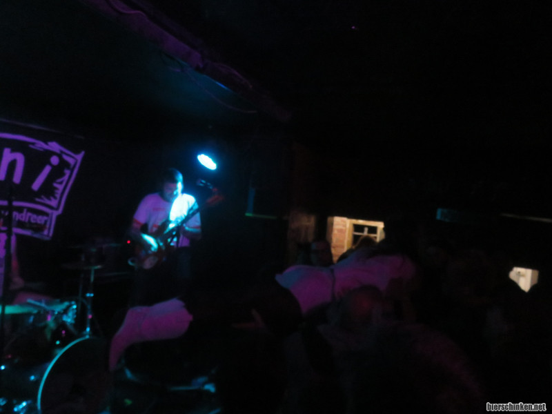 Wie unschwer auf diesem Foto zu erkennen, setzt Sängerin Claude hier gerade zum Stagedive an. Aber ich glaube das hat einfach niemand verstanden, und so plankte sie nur ein paar Sekunden in der Luft. Auch okay.