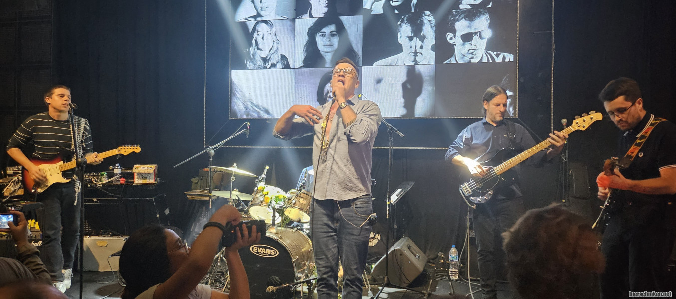 Als nächstes spielen dann SMITHCETERA, eine The-Smiths-Coverband. Ich habe mich nie wirklich mit The Smiths und ihrem vorsichtig gesagt komischem Sänger beschäftigt. Das ist so eine Gruppe von UK-Punks, denen meine UK-Punk-Helden immer ins Bier gespuckt haben. Gut, dass Smithcetera meine Bildungslücke zunächst mit einer kleinen Doku versucht zu füllen. Zumindest werden dokumentarische Snippets zu den Smiths eingespielt.