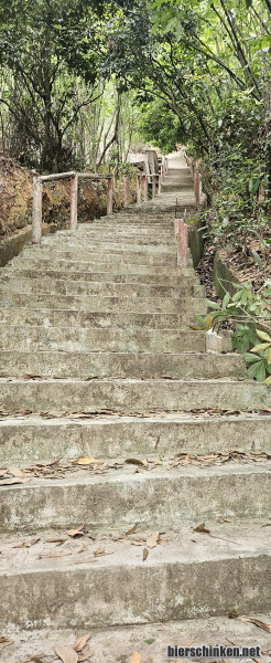 Dann geht es in den Yangtaishan-Park. Dieser ist sehr schön, die Wege bestehen aber ausschließlich aus Treppen und so geht es mit einem ordentlichen Kater rauf und runter und runter und rauf. Wie die Leute es hier hinkriegen mit den spindeldünnen Waden hier so hochzujagen, wird mir wohl immer ein Rätsel bleiben. Außerdem ist Shenzhen eine komplett andere Welt als Beijing oder Shanghai. Hier habe ich außerhalb des Flughafens noch keinen einzigen Ausländer gesehen und der Exotenstatus bei der Wanderung ist mitunter etwas nervig. Zumindest muss ich das ein oder andere Mal als Fotomotiv herhalten. Da aber alle nett und freundlich fragen, lasse ich den Leuten ihr Trophäenfoto mit der Kartoffel.