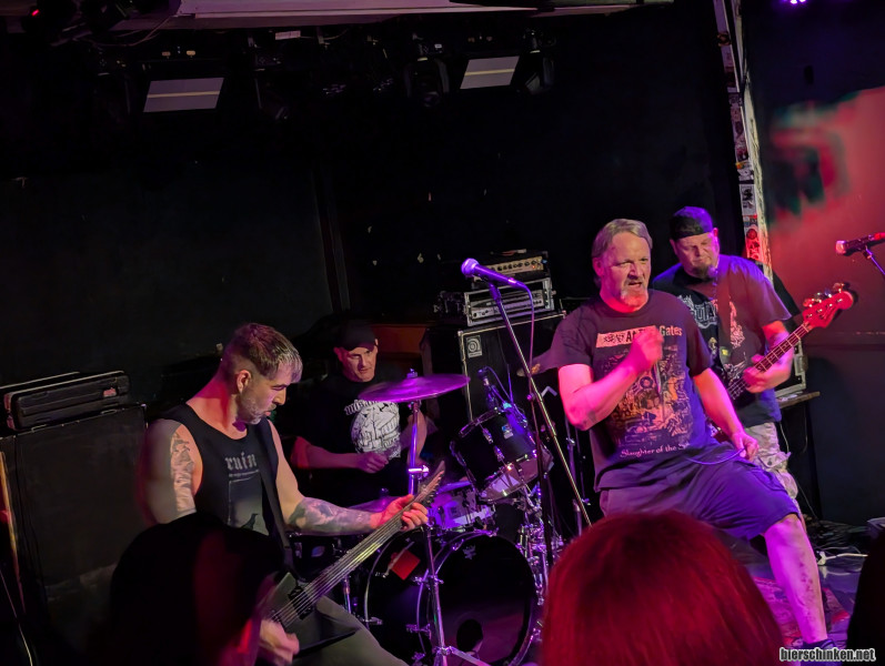 Macht Spaß. Symhathisch und schnörkellos. Aggressiv aber nicht unangenehm oder Poser-mäßig. Wenn dann mit Augenzwinkern. Neu gegründete Band. Auch am nächsten Tag in der Q kann ich immer noch nicht sagen, welche Sprache der Gesang ist. Am Ende noch kleines (ich glaube) You Suffer Cover.