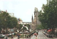 und das wird die Gedächtniskirche bei Tag sein, mit komischen Skulpturen davor