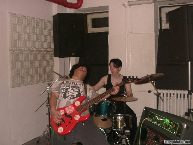 Ein letztes Posing für die Kamera vom Bassisten und vom Schlagzeuger....