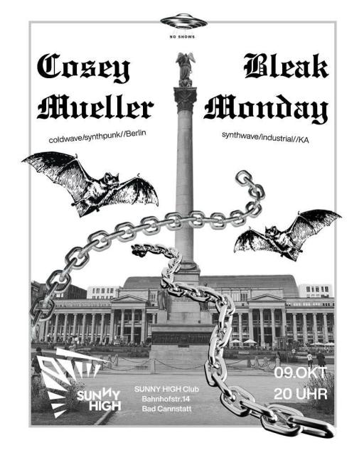 No Shows & Sunny High präsentieren ein Synthwave/Coldpunk Konzert mit COSEY MUELLER (Berlin) & BLEACK MONDAY (Karlsruhe).