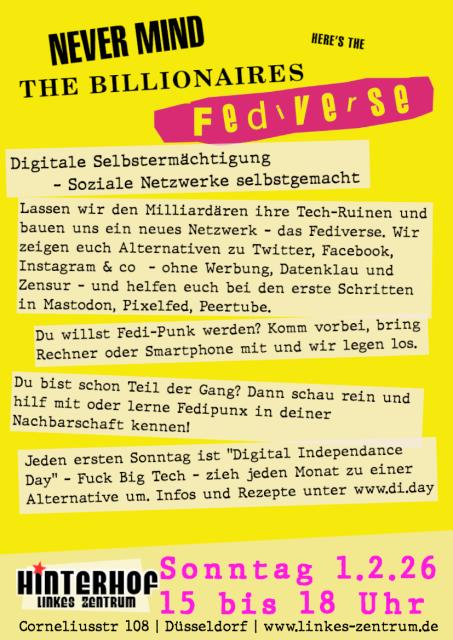 Lassen wir den Milliardären ihre Tech-Ruinen und bauen uns ein neues Netzwerk - das Fediverse. Wir zeigen euch Alternativen zu Twitter, Facebook, Instagram & co - ohne Werbung, Datenklau und Zensur - und helfen euch bei den erste Schritten in Mastodon, Pixelfed, Peertube.