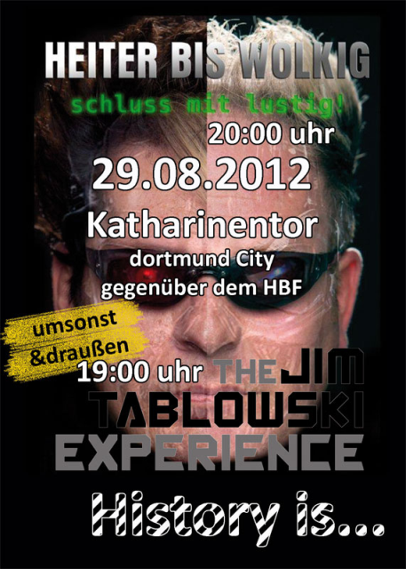 Im Rahmen des DGB-Friedensfestival wird es an der Katharinentreppe ein breites Programm über mehrere Tage geben - Redebeiträge, Musik, Aktionen. Wir präsentieren am 29.08. die Kult-Politpunk-Kabarettisten HEITER BIS WOLKIG! Außerdem mit dabei die neue Dortmunder Melodic-Punkrock-Hoffnung THE JIM TABLOWSKI EXPERIENCE! Selbstverständlich Umsonst & Draußen.