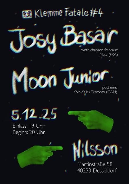 Between Bodies. Diese wurden von der Fachpresse (Ox-Fanzine, Ausgabe #166) vermutlich aufgrund der hymnischen Power ihrer Songs bereits als mögliche Retter des Emos besprochen. Ausgleichssportlerin Moon Junior baut hingegen ruhige, sparsam instrumentierte Vignetten (sprich: kurze Songs, die plötzlich aufhören) und ihr gelingt es mit anderen Methoden, dem Publikum die Sprache zu verschlagen: "Sometimes it sort of feels like Im tricking the audience into breathwork if the space is small enough and I can play without a pa." Wer auch mal ausgetrickst werden möchte, sollte definitiv zu unserem Konzertabend im kleinen aber feinen Nilsson kommen und sich Moon Junior anschauen.