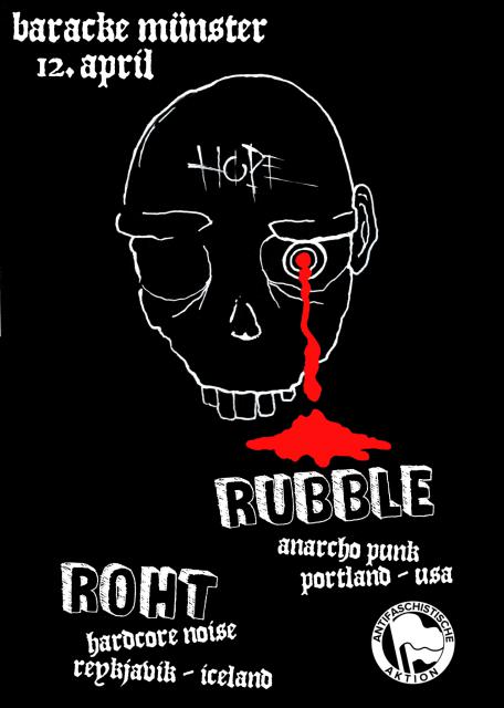 Mit ROHT haben wir zum ersten mal eine Band aus Island am Start, das Duo spielt einen Mix aus fiesen schleppenden Hardcore, Noise und Industrial.(https://rroohhtt.bandcamp.com)
