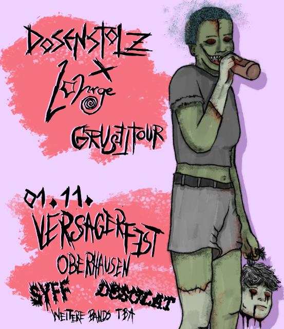 Zu Beginn der schaurigen Jahreszeit gehen Dosenstolz und Lohrge gemeinsam auf Gruseltur in Richtung des unheimlichen Westen Deutschlands. In der Nacht vor Helloween wird sich in Erfurt gefürchtet, am Tag der Toten in Köln gegraut, an Allerheiligen in Oberhausen geschaudert und an Allerseelen in Kassel gezittert. Zombiehafte betrunkene Männer, heimsuchende Dämonen des Faschismus und den allgegenwärtigen Spuk der Heteronormativität: Sie alle wollen wir vertreiben mit unserem Geistertanz, auf dass sie niederfahren in die ewige Verdammniss der Hölle welcher sie entsprangen. 💀