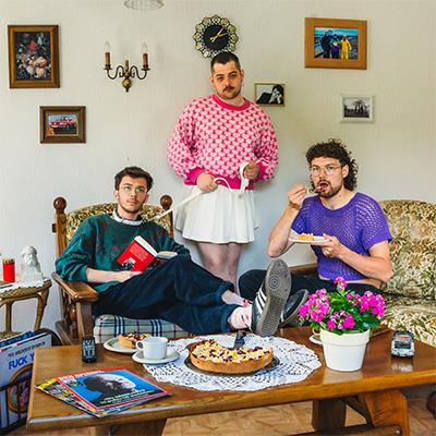 Beginnt das Album des Gen-Z-Dreiers noch ruhig und für ein Punkalbum untypisch mit einem Klavierinstrumental, werden dann bei Song zwei die Gitarren eingestöpselt und breit bespielt. Direkt zu Beginn liefert man so mit Künstler aus Süddeutschland den ersten Volltreffer ab. Danach geht es vorerst grandios weiter. Ich will dein Hundi sein schlägt ganz klar den Bogen zu den STOOGES und irgendwie auch zu TOXOPLASMA und macht dabei mit dem ganzen Gehechel und dem Gebell so viel Spaß, das der Song bei mir direkt in die Wiederholungsschleife geht. Danach wird es politischer und zudem rock'n'rollig, denn bei Die SPD schiebt ab bedient man sich überraschenden Uh-Uhs, die dem Refrain eine lockere Fröhlichkeit verleiht, die somit das ernste Thema konterkariert. Mit Mollis aus Champagnerflaschen verlässt man dann kurz den Punkrock, um es sich irgendwo zwischen DIE LIGA DER GEWÖHNLICHEN GENTLMEN und SUPERPUNK gemütlich zu machen. Dabei kreieren sie mit Textzeilen wie "36° C wir rollen bergab, wenn sowieso alles im Arsch ist, warum fackeln wir es nicht ab? Heute brennt die Stadt, wir haben Böller in den Satteltaschen und Mollis in Champagnerflaschen" vielleicht einen zukünftigen Sommerhit und gleichzeitig den perfekten Schlachtruf gegen die bestehenden Verhältnisse, für die eigene Generation an jungen und linken Menschen. Hier zeigt sich, wie es klingen muss, wenn man Gesellschaftskritik sexy präsentieren möchte! Insgesamt zeigt sich die Band überaus politisch und thematisiert Dinge wie Chancengleichheit, Lohnarbeit und die Asylpolitik und schafft es dabei immer wieder, messerscharfe Beobachtungen ins Feld zu führen. Bei Schimmelkulturen aller Fächer verlieren sie mich dann allerdings, als sie den anfangs gut aufgebauten Witz mit dem "Kommunisten-Kühlschrank" zu arg in die Länge ziehen. Gewinnen mich dann aber einen Song später zurück, wenn sie mit Wehr dich gegen die Pflicht ganz am Puls der Zeit liegen und sich gegen die momentan diskutierte Wiederaufnahme der Wehrpflicht positionieren. Gleiches passiert im Verlauf der neunzehn Songs noch ein paar mal. Antifa auf Klassenfahrt übt Kritik an der eigenen Szene oder tut vielleicht auch nur so und bei Das Aus der Jugend reflektiert man das eigene zukünftige Dasein kritisch. Gefällt mir beides ausgesprochen gut, wobei der letzte der beiden gerade genannten mit seinen über sechs Minuten Länge auch gut und gerne nur halb so lang hätte sein können. Fick Mindestlohn und Wir bauen uns ein Haus schielen derweil nach Bremen. Ebenfalls starke Nummern. Allgemein lässt sich sagen, dass sie immer wieder klingen wie POGENDROBLEM oder TEAM SCHEISSE mit fetteren Gitarren und weniger Dada. Trotzdem wirken manche Songs noch etwas unausgegoren, wie die Larry Laminator Songs. Auch die Rocknummer namens Glockengelaeut in der Mitte des Albums, die etwas unfertig wirkt, oder der Bierbauch Bossa hätten für mich nicht unbedingt sein müssen.